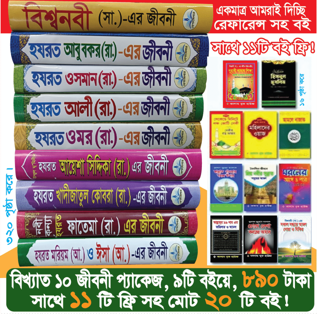 ১–বিশ্বনবী হযরত মুহাম্মদ (সা.) এর জীবনী ২–হযরত আবু বকর (রা.) এর জীবনী ৩–হযরত উমর (রা.) এর জীবনী ৪–হযরত উসমান (রা.) এর জীবনী ৫–হযরত আলী (রা.) এর জীবনী ৬–হযরত আয়েশা সিদ্দিকা (রা.) এর জীবনী ৭–হযরত ফাতিমা (রা.) এর জীবনী ৮–হযরত খাদিজাতুল কোবরা (রা.) এর জীবনী ৯–হযরত মরিয়ম (আ.) ও ঈসা (আ.) এর জীবনী